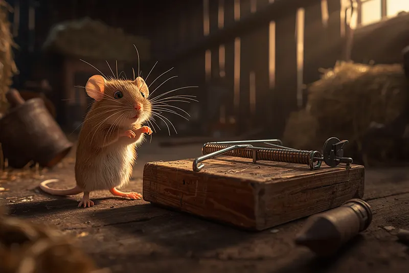 Um rato, olhando pelo buraco na parede, vê o fazendeiro e sua esposa abrindo